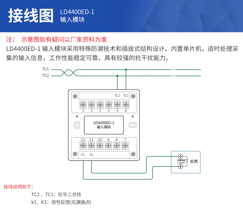 5、LD4400ED-1輸入模塊可檢測(cè)無(wú)源開(kāi)關(guān)接點(diǎn)線(xiàn)路斷線(xiàn)故障。