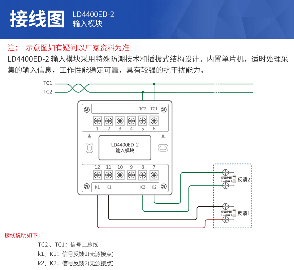 5、LD4400ED-2輸入模塊可檢測(cè)無(wú)源開關(guān)接點(diǎn)線路斷線故障。