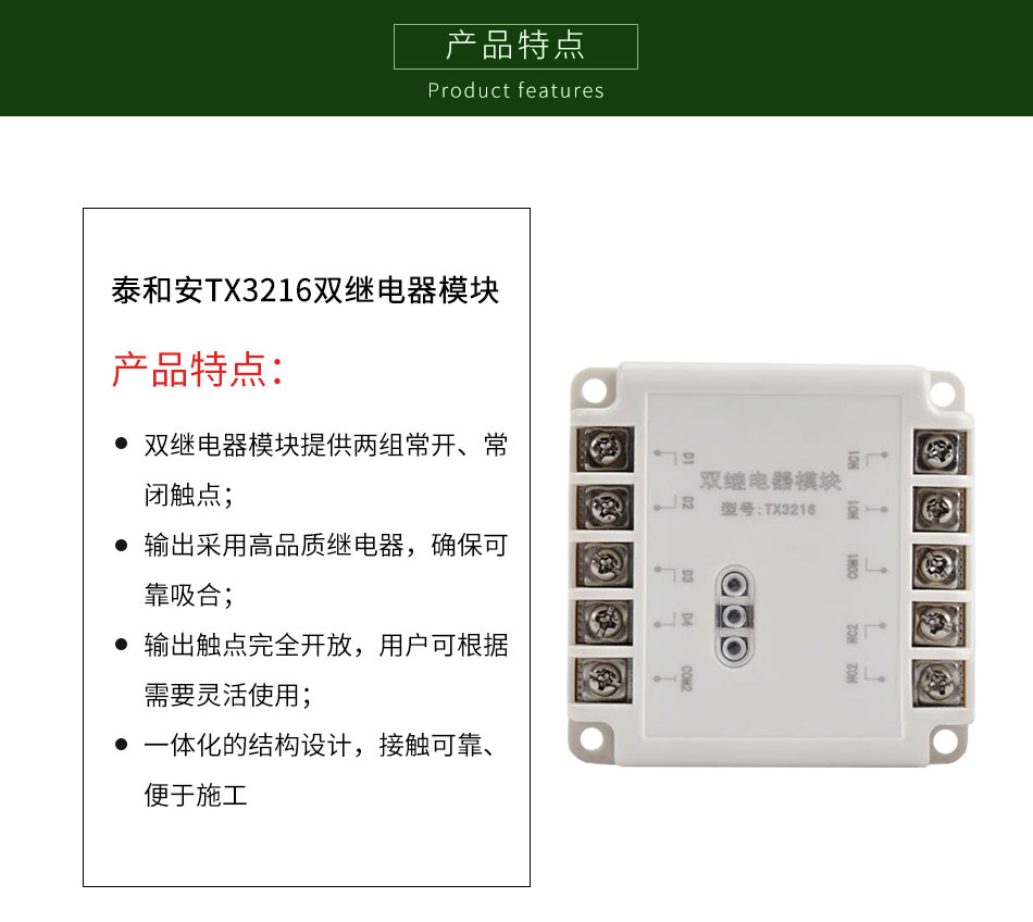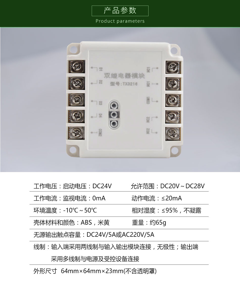 TX3216雙繼電器模塊提供兩組常開、常閉觸點;