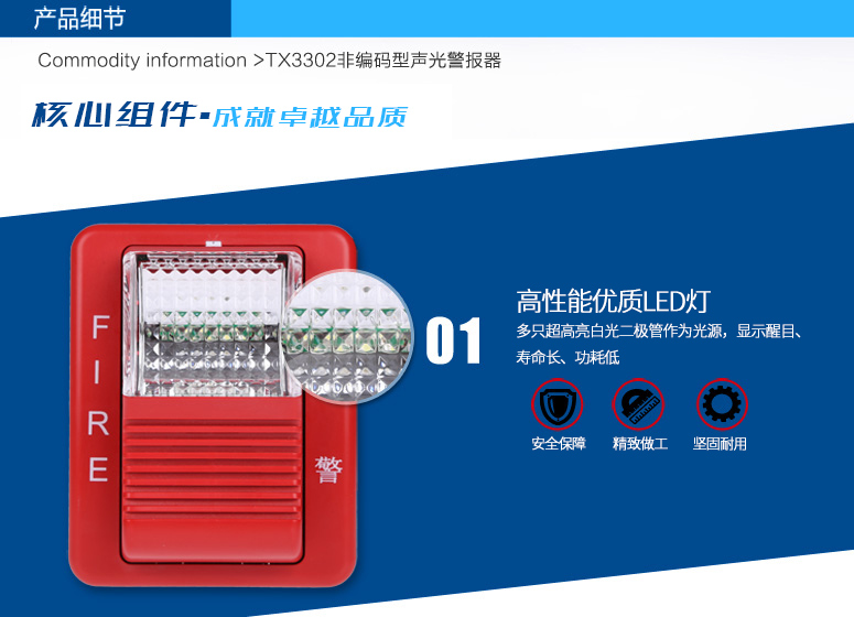TX3302聲光警報(bào)器(以下簡稱聲光警報(bào)器),是一種安裝在現(xiàn)場的聲光報(bào)警設(shè)備。采用高亮度的LED光源,聲光警報(bào)器啟動(dòng)后發(fā)出強(qiáng)烈的聲光報(bào)警信號,以達(dá)到提醒現(xiàn)場人員注意的目的。