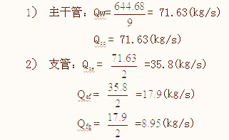 管網(wǎng)內(nèi)剩余量:△W2=0(㎏)(規(guī)范3.3.14條之5:均衡管網(wǎng)和只含一個封閉空間的非均衡管網(wǎng),其管網(wǎng)內(nèi)的滅火劑剩余量均可不計)。